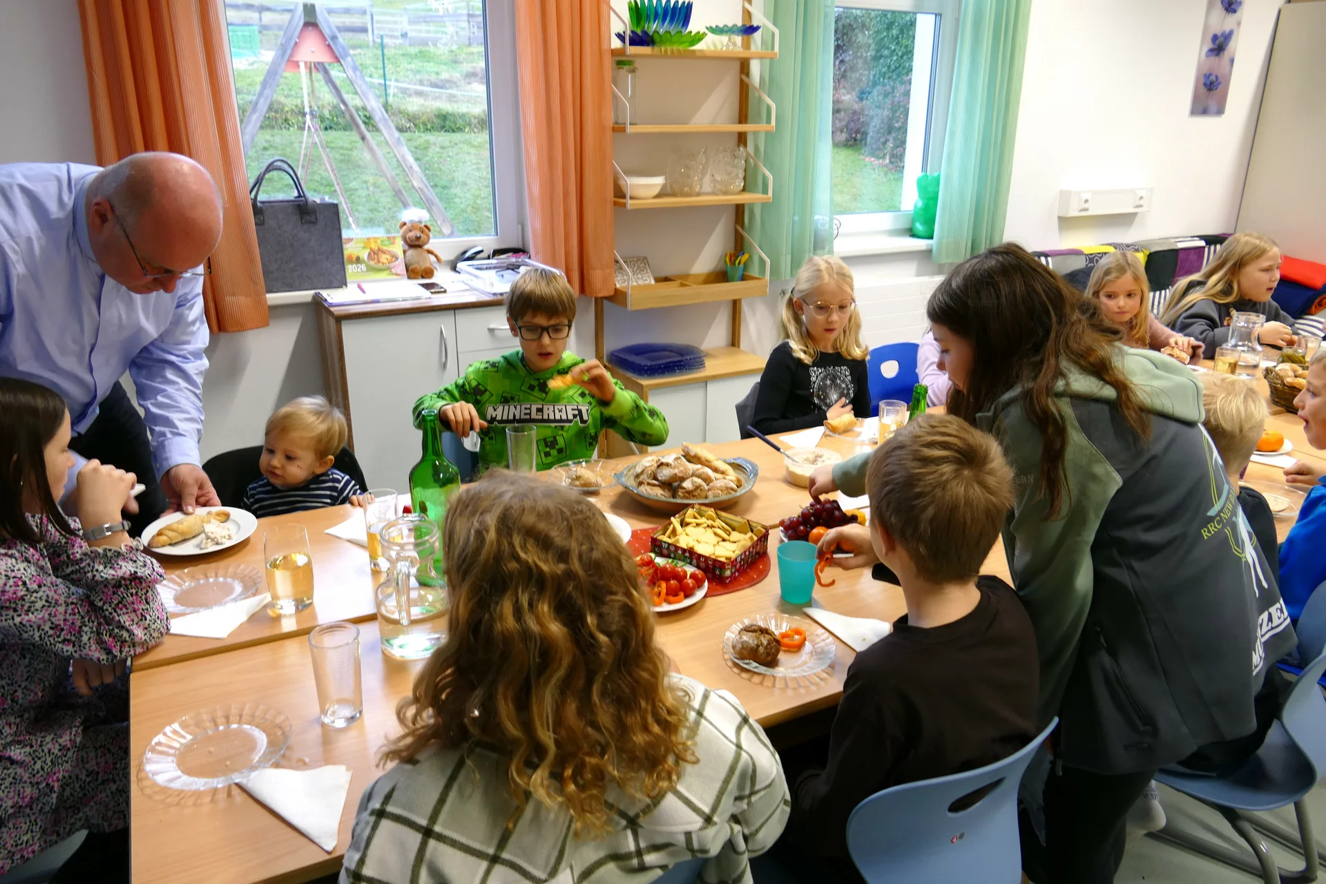 30.06.2025: Die 4. Klasse bereitet Burger zu. Klassenlehrer Deutschl gibt die Tipps dazu.