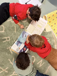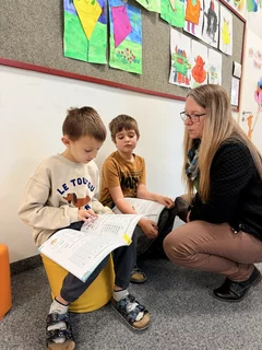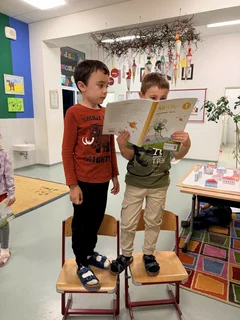 26.11.2025: Lesefest für die 1. Klasse mit Lesepatinnen und -paten aus der 2. Klasse.