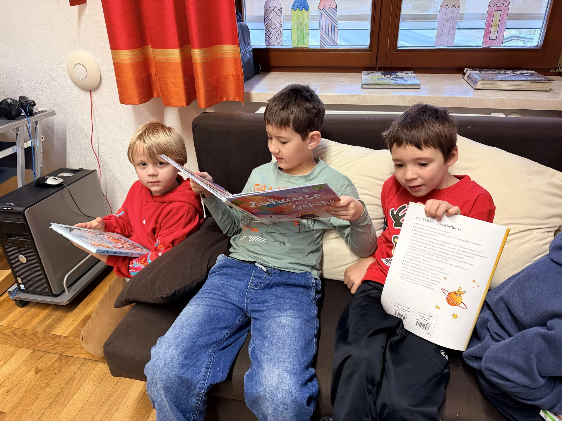 Die 1. Klasse genoss das Buch „Rabe Socke – Alles erlaubt?“, was natürlich auch viel Gesprächsstoff zum Thema „Immer brav sein – das schafft keiner“ mit sich zog.