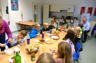 Anlässlich des Welternährungstages erzählten uns die Gemeindebäuerin Frau Christandl viel über gesunde, regionale Lebensmittel und wie sie hergestellt werden. Zur Auflockerung gestalteten die Kinder eine "gesunde" Karotte. Zum Abschluss konnte die oben sichtbare hervorragende Jause genossen werden.