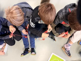 Die Kinder durften Rohre schneiden und haben das mit Begeisterung und Hingabe bis zum Läuten gemacht.